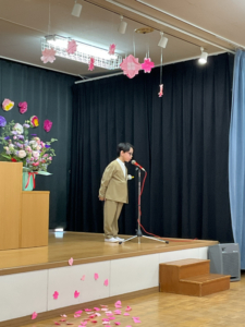 ホーム > ブログ > 卒園式がありました。 卒園式がありました。 2025年3月18日 3月15日(土) 5歳児さんの卒園式がありました。 9名の卒園児さんは、自分の夢の発表し、卒園証書を 立派に受け取っていました。 今年度の卒園式は、5歳児さんが桜🌸をイメージして 会場を作り、歌も自分達で選ぶなど、自分達で作り上げた 卒園式になりました。 卒園おめでとうございます!小学校に行っても 頑張ってくださいね。 < Back Next > カテゴリー カテゴリー1 (2) アーカイブ 2025年12月 (4) 2025年11月 (4) 2025年10月 (9) 2025年9月 (4) 2025年8月 (9) 2025年7月 (5) 2025年6月 (7) 2025年5月 (7) 2025年4月 (7) 2025年3月 (2) 2025年1月 (3) 2024年12月 (3) 2024年11月 (2) 2024年10月 (5) 2024年9月 (4) 2024年8月 (3) 2024年7月 (6) 2024年6月 (3) 2024年5月 (5) 2024年4月 (3) 2024年3月 (4) 2024年2月 (5) 2024年1月 (1) 2023年12月 (3) 2023年11月 (2) 2023年10月 (4) 2023年9月 (4) 2023年6月 (3) 2023年5月 (1) 2023年4月 (1) 2023年3月 (1) 2023年2月 (2) 2022年12月 (2) 2022年10月 (7) 最新の記事 わくわくデーがありました! (3.4.5歳児) サッカー教室がありました! (3.4.5歳児) 白老小学校に行ってきました! 発表会がありました! (3.4.5歳児) 11月のお誕生会🎂