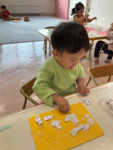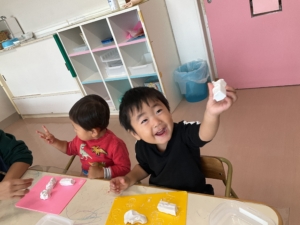 ハロウィンにちなんだ宝探し、粘土や紐とおしなどを