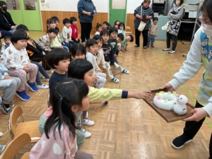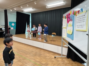 ホーム > ブログ > 2月のお誕生会がありました🎂 2月のお誕生会がありました🎂 2026年2月19日 2月18日(水) 2月生まれのお友達の お誕生会がありました。 『ブレーメンの音楽隊』のパネルシアターや 誕生カード、季節のケーキ、歌のプレゼントが ありました♬ 4名のお誕生児のお友達、おめでとうございます! < Back カテゴリー カテゴリー1 (2) アーカイブ 2026年2月 (3) 2026年1月 (6) 2025年12月 (6) 2025年11月 (4) 2025年10月 (9) 2025年9月 (4) 2025年8月 (9) 2025年7月 (5) 2025年6月 (7) 2025年5月 (7) 2025年4月 (7) 2025年3月 (2) 2025年1月 (3) 2024年12月 (3) 2024年11月 (2) 2024年10月 (5) 2024年9月 (4) 2024年8月 (3) 2024年7月 (6) 2024年6月 (3) 2024年5月 (5) 2024年4月 (3) 2024年3月 (4) 2024年2月 (5) 2024年1月 (1) 2023年12月 (3) 2023年11月 (2) 2023年10月 (4) 2023年9月 (4) 2023年6月 (3) 2023年5月 (1) 2023年4月 (1) 2023年3月 (1) 2023年2月 (2) 2022年12月 (2) 2022年10月 (7) 最新の記事 2月のお誕生会がありました🎂 わくわくデーがありました! サッカー教室がありました⚽ 保育参観日・保護者懇親会がありました。 内科健診がありました。