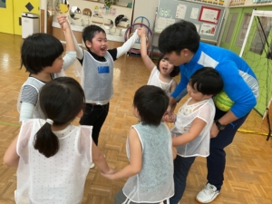 試合後には「勝った!」「5対5で勝った(?)」と